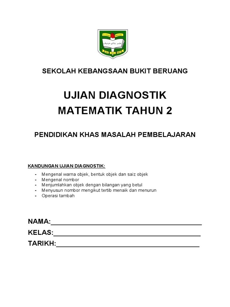Koleksi ujian diagnostik tahun 1 | bahasa melayu dan matematik perkongsian dari fb page koleksi bbm portal pilihan guru masa kini.